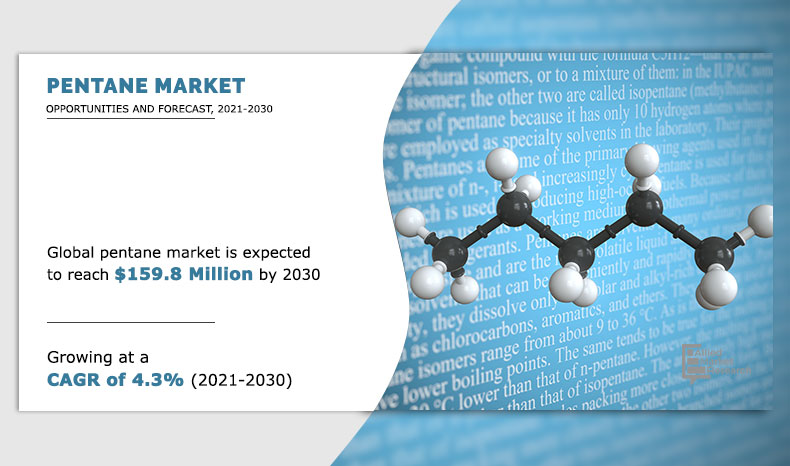The global pentane market is projected to reach $159.8 million by 2030, growing at a CAGR of 4.3% from 2021 to 2030.